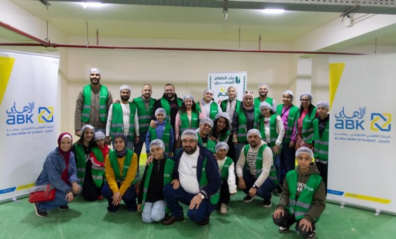 موظفو البنك الأهلي الكويتي – مصر وأسرهم يتطوعون لتعبئة وتغليف كراتين رمضان بالتعاون مع بنك الطعام المصري