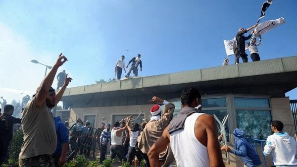 وهاجم مئات من المحسوبين على التيار السلفي السفارة والمدرسة الاميركيتين في 14 سبتمبر 2012، احتجاجا على فيلم مسيء للإسلام أنتج في الولايات المتحدة.