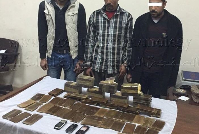 عقب تحريات مسبقة وإذن صادر من النيابة تمكنت إدارة البحث الجنائى بمديرية أمن أسوان من ضبط ( عاطلان ) لقيامهما بالإتجار فى المواد المخدرة خاصةً نبات البانجو المخدر … وبحوزتهما ( بندقية آلية و 40 طلقة نارية و 15 لفافة كبيرة الحجم تحوى نبات البانجو المخدر وزنت 45 كيلو جرام ) .