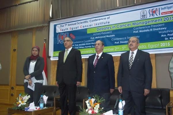 جاء ذلك خلال كلمته بالجلسة الافتتاحية للمؤتمر العلمي السنوي السابع للاورام بجامعة أسيوط والذي ينظمه معهد جنوب مصر للاورام بحضور الدكتور طارق الجمال عميد كلية الطب ورئيس مجلس ادارة مستشفيات جامعة أسيوط والدكتور مصطفى الشرقاوي عميد معهد جنوب مصر للاورام ونواب رئيس جامعة اسيوط السابقين ورجال الدين الاسلامي والمسيحي .