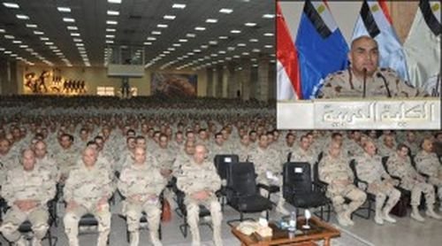 وطالب بالحفاظ على المستوى المتميز والقدرات البدنية والمهارية والثقة العالية بالنفس التي تمكنهم من تنفيذ المهام والواجبات المستقبلية المكلفين بها، كما طالبهم بالحفاظ على الإنضباط العسكرى ليكونوا قدوة لشباب مصر فى العمل الجاد والإهتمام بالعلم والمعرفة، مؤكدًا أن إنتمائهم للعسكرية المصرية العريقة شرف ومبعث فخر وإعتزاز بالنفس، لأنهم سيصبحون حماة الوطن والسند القوى لشعب مصر العظيم.