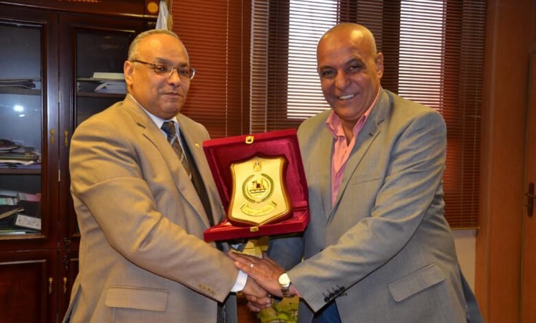 أهدى المستشار مجدي البتيتي محافظ بني سويف، درع المحافظة للسيد محمود محمد محمد السيد عبد الرازق وكيل وزارة المالية بالمحافظة