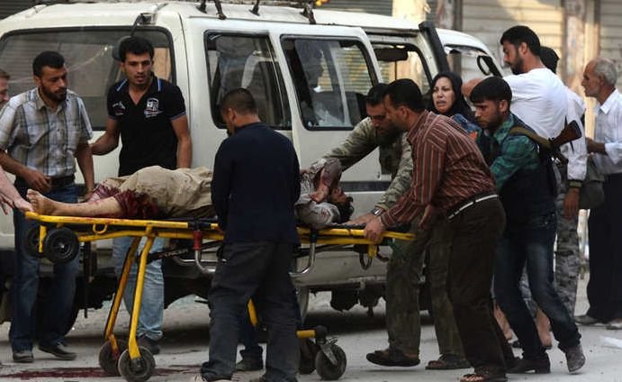 وذكر "المرصد السوري لحقوق الإنسان"، وهو جماعة معارضة لنظام الأسد، أن طائرات تابعة للنظام قصفت منطقة "سراقب"، شمال غربي إدلب، ببرميلين متفجرين على الأقل، مما أسفر عن سقوط 40 جريحاً على الأقل، كانوا جميعهم يعانون من أعراض الاختناق نتيجة استنشاق غازات سامة.