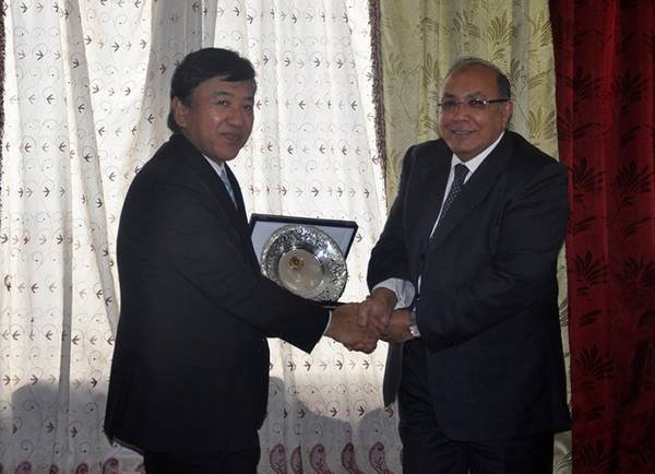 السفير الياباني تاكاهيرو اكوجاوا يتحدث للكاتب الصحفي محمد الشرقاوي