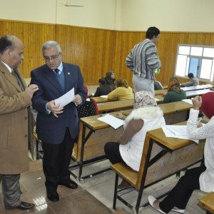 تفقد الدكتور جابر نصار رئيس جامعة القاهرة لجان امتحانات طلاب كلية دار العلوم ورافقه خلال جولته فى اللجان الدكتور علاء