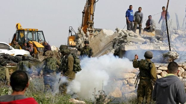 وتقول إن عمليات الهدم تأتي كجزء من مخطط إسرائيلي لهدم منازل الفلسطينيين وأبعاد نحو ألف فلسطيني عن منطقة تبلغ مساحتها نحو20 كيلومترا مربعا في مرتفعات الخليل جنوبي الضفة الغربية والتى أعلنتها تل أبيب منطقة عسكرية عام 1970.