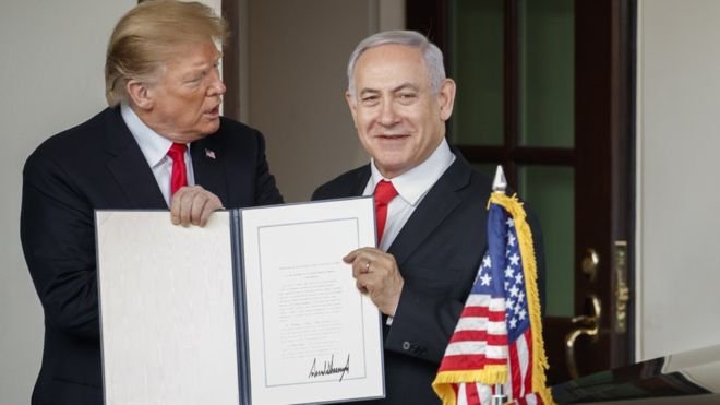 وقالت الصحيفة إن ترامب "أظهر من جديد عدم اكتراث بصورة متهورة للأعراف الدولية بإعلان أن واشنطن يجب أن تعترف بسيادة إسرائيل على مرتفعات الجولان".
