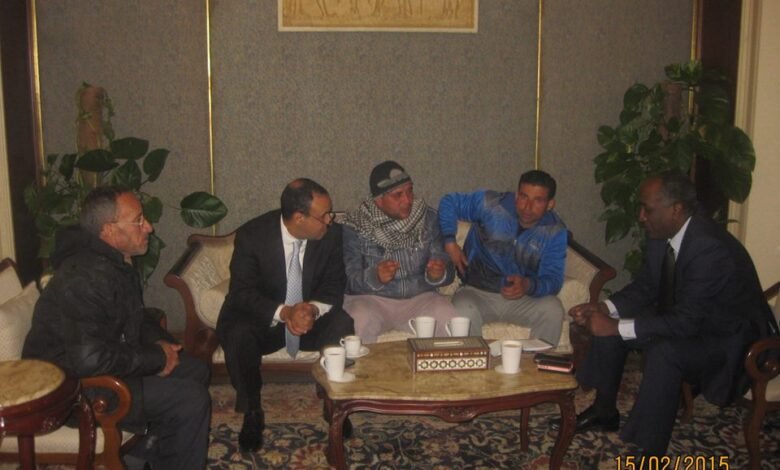 في ضوء الجهود التي تقوم بها وزارة الخارجية في إطار خلية الأزمة التي وجه السيد الرئيس بتشكيلها من ممثلي كافة الجهات المعنية لمتابعة قضية المختطفين في ليبيا، كلف الوزير سامح شكري كلا من المتحدث باسم وزارة الخارجية بدر عبد العاطي وسفير مصر في ليبيا محمد أبو بكر باستقبال مجموعة من أهالي الصيادين والذي يتردد احتجاز عدد من ذويهم في مصراتة في ليبيا، حيث استمعا إلى المعلومات المتوافرة لديهم، ليتسنى نقلها على الفور إلى خلية الأزمة التي تعمل على مدار الساعة، والتي تقوم بدورها بالتواصل مع الحكومة الليبية والسلطات المحلية في غرب ليبيا للتأكد من صحة هذه المعلومات والعمل على سرعة الإفراج عنهم في حالة التأكد من ذلك.