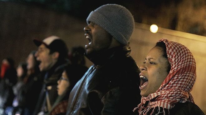 وكانت حشود قد تجمعت في نيويورك للاحتجاج على قرار هيئة المحلفين.