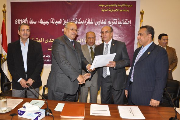 كرمت محافظة بنى سويف 81 مدرسة فائزة بمكافأة صندوق الصيانة البسيطة (سماف) وذلك على خلفية مشاركتها فى تنفيذ أنشطة الصندوق فى العام الدراسى 2013/2014