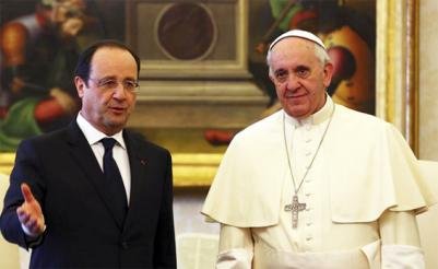 لقاء لافت جمع اليوم فرنسوا هولاند الرئيس الفرنسي الاشتراكي وفرانسيس بابا الفاتيكان. لقاء هو الثاني بين الرجلين منذ وصول