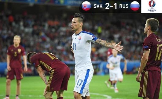 نجح المنتخب السلوفاكي في تحقيق فوزا صعبا على نظيره الروسي بهدفين مقابل هدف في افتتاح مباريات الجولة الثانية من المجموعة الثانية في بطولة يورو 2016.