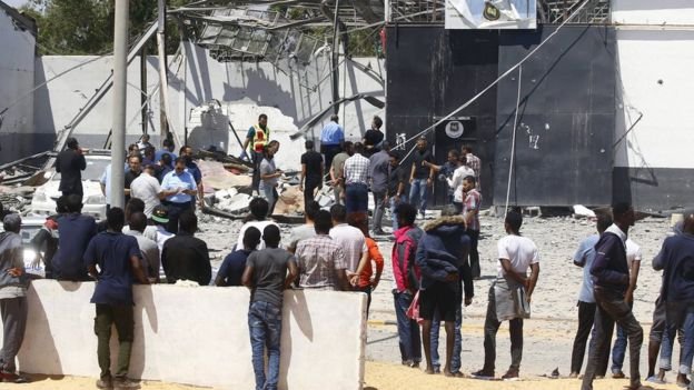 ويقول الجاسر إنه "في محيط مدينة تاجوراء شرقي ليبيا، وفي ليلة الثاني من يوليو/تموز الجاري استهدفت غارتان مركز احتجاز للمهاجرين، وهو ما أدي إلى مقتل 53 منهم على الأقل بينهم ستة أطفال وإصابة 130 آخرين حتى أن الأشلاء كان يجري استخراجها من تحت الحطام بعد عدة أيام من القصف".