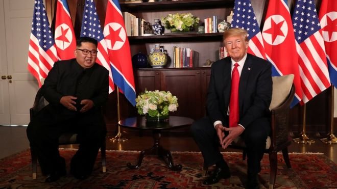 نشرت صحيفة الديلي تليغراف صورة كبيرة الحجم للرجلين أثناء القمة تحت عنوان "ترامب وكيم يظهران للعالم أنهما أفضل الأصدقاء".