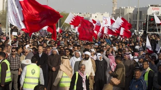 وشهدت سلسلة من الاحتجاجات قادها زعماء الشيعة في البلاد، كانت أكبرها عام 2011 في العاصمة المنامة. وقمعت هذه الاحتجاجات بمساعدة قوات أرسلتها السعودية لمساعدة اجهزة الأمن البحرينية.