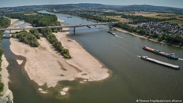 وأدى ارتفاع درجات الحرارة على مدى أسابيع وقلة هطول الأمطار، إلى انخفاض منسوب المياه في شريان ألمانيا التجاري، مما تسبب بتأخير الشحن ورفع تكاليفه، وكانت هناك مخاوف من أن تؤدي اضطرابات الشحن إلى تراجع النمو الاقتصادي في أكبر اقتصاد أوروبي بواقع نصف نقطة مئوية هذا العام.