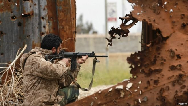 وتشهد ليبيا صراعا مسلحا بين فصائل إسلامية وفصائل أخرى مسلحة مدعومة من الجيش الليبي والحكومة الليبية المعترف بها دوليا، ومقرها مدينة طبرق.