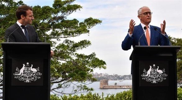 وقع الرئيس الفرنسي إيمانويل ماكرون ورئيس الوزراء الأسترالي مالكولم ترنبول اليوم الأربعاء، عدداً من الاتفاقات، تأكيداً على عزمهما بناء "شراكة أكثر عمقاً" بين البلدين في سياق "محور جديد في منطقة المحيطين الهادئ والهندي".